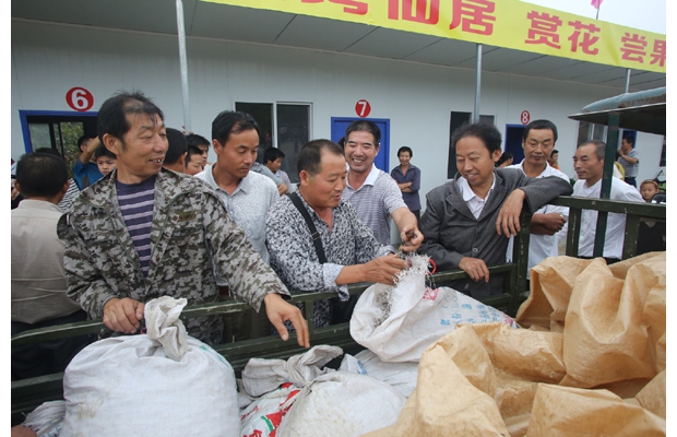 随州网讯 随州市曾都区何店镇花湾村板栗大市场日前开业,该市场的开业极大地解决了当地村民的板栗销售问题,村民们足不出户,就可以将自家的板栗卖向全国各地。 (记者 孙洪涛 摄)