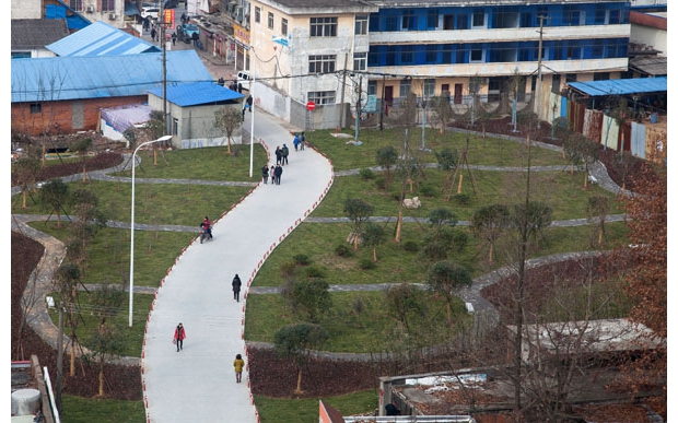 随州网讯 随州老火车站铁路天桥拆除后,建起了一片小游园,深受周边群众欢迎。(记者 徐斌 摄)