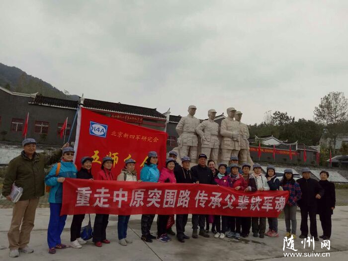 随州网讯 本报记者 陈巧玲 通讯员 杨倩倩 今年是中原突围胜利70周年。为缅怀先辈,弘扬伟大的中原突围精神,10月中下旬,北京新四军研究会五师中原分会组织部分新四军第五师后代,开展“重走中原突围路,传承父辈铁军魂”活动。10月28日,考察团一行走进随州,追寻先辈在这里浴血奋战的足迹。 据了解,重走“中原突围路”活动的成员均为新四军五师中原突围部队的后代,包括原新四军五师王定烈 (原中原军区第一纵队二旅四团团长、开国将军、中国人民解放军空军原副司令员)的女儿王娟娟等新四军五师后代一行近20人。考察团一行自10月中旬从湖北大悟出发,沿李先念部(二纵)突围路线去,沿王树声部(一纵)突围路线回,一路上凭吊战场、寻访战争遗址、参观革命纪念馆等。 在随期间,考察团先后参观了随州市曾都区洛阳镇九口堰革命旧址、九口堰新四军第五师旧址纪念园等。他们一路听着讲解员的讲解,用相机记录着父辈的足迹,感受父辈们当年战斗和工作的环境,回忆着父辈战斗的历程。在九口堰新四军第五师旧址门口,参加考察活动的成员朱颜,左手拿着姥爷庞俊青年时代的黑白照片,右手按下快门,拍下一组特别的纪念照。 “这里也是他曾经战斗过的地方!”朱颜说,这次重走 “中原突围路”活动中,她随身带着姥爷的照片,每到一个姥爷战斗过的地方,都为他留一张影。 “这是一次意义非常的寻访,纪念革命先烈,传承先辈精神,提醒我们要不忘过去、不忘初心……”北京新四军研究会五师中原分会副会长李炎说,随州是新四军五师发展壮大的发源地之一,是老一辈曾经战斗过的地方,新四军五师后代考察团对这片热土充满感情。在九口堰新四军第五师旧址纪念园,李炎代表考察团一行捐赠了他们的最新研究成果——《铁流》系列丛书;随州市新四军历史研究会也向考察团回赠了新研究成果——历史研究文献《李先念在随州》。李炎表示,要进一步研究好、宣传好革命历史,将先辈们的革命意志和革命精神传承下去,让新四军精神代代相传! |