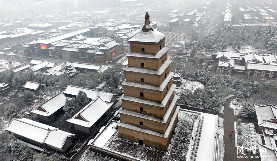 2月21日,西安大雁塔银装素裹。当日,陕西省西安市出现降雪天气。雪后的古城西安银装素裹,吸引很多市民前来欣赏雪景。 新华社记者 陶明 摄