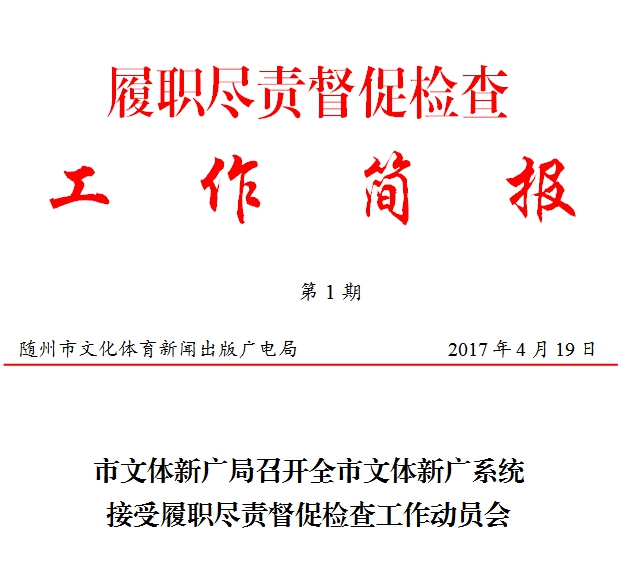 为科学推进全市文体新广系统接受履职尽责督促检查工作,强化思想认识,做好宣传动员工作,4月17日,市文体新广局组织召开了全市文体新广系统接受履职尽责督促检查工作动员会。局党组书记、局长黄苹主持会议,市纪委派驻市教育局纪检组组长王文学出席会议并讲话。县(市、区)局主要负责人和分管领导、局直属单位负责人参加了会议。 全省电视电话会议以后,市文体新广局迅速召成立了接受履职尽责督促检查工作领导小组,制定了《市文体新广系统接受履职尽责督促检查工作实施方案》,做到了早安排、早部署、早动员。会上,局党组成员、副局长石正东对《2017年度全市文体新广系统接受履职尽责督促检查工作实施方案》进行了介绍。随县文体新广局、广水市文体新广局、曾都区文体新广局、大洪山风景名胜区宣传文化局、随州高新区社会事业局、市文化市场综合执法支队、市博物馆、擂鼓墩文物管理处、市图书馆等单位负责人分别作了表态发言。 黄苹指出,接受履职尽责全面督查是对全市文体新广系统履职尽责成效的一次全面“体检”,也是发现问题、改进工作的有利契机。全市文体新广系统一定要坚定信心,变压力为动力,变考验为机遇,全力以赴地打好这场硬仗,重点是要做到“五个明确”:一是要明确督查对象。全市文体新广系统人人都是被督查对象、每个单位都在被督查之列,谁也不能置身事外、袖手旁观,要紧盯工作的每一个角落、每一个人、每一件事。二是要明确督查内容。作为既是全面督查对象(文化工作),又是点题督查对象(体育工作),还要做好体彩销售、广播电视电影放映播出、网络视频监管等相关领域的延伸督查工作。三是要明确时间节点。今年的履职尽责督促检查工作从4月份开始到12月底结束,要严格把握时间节点,把动员部署、查找问题、集中整改、接受测评和总结评估各个阶段的工作落细落实,做到有的放矢、有序推进。四是要明确工作措施。各地各单位要迅速成立接受履职尽责督促检查工作领导小组,尽快制定实施方案,制定时间表,确立路线图,明确责任人。五是要明确工作目标。要对督查工作的重点部位,对矛盾集中的重点领域,尤其是对群众反映强烈的突出问题、屡改屡犯的老大难问题、媒体关注度高的敏感和热点问题,动真格、下猛料、出重拳,以督促检查工作的优异成绩和实际成效让自己满意、让群众满意。六是明确几个结合。要把接受履职尽责督促检查工作与中心工作结合起来,与服务供给侧结构性改革结合起来,与“两学一做”学习教育、落实党风廉政建设“两个责任”以及作风建设突出问题专项整治结合起来,切实解决群众反映强烈的突出问题,实现整改无盲点、零死角、不反弹。 王文学传达了相关会议精神,并就落实全市干部能力“提升工程”和做好履职尽责督查工作提出了要求。一是要充分认识履职尽责督查的重要意义。坚持把接受履职尽责督促检查工作作为推动文化改革发展的重要动力、作为解决各项工作存在问题的难得机遇、作为改进文体新广系统工作作风的有力抓手。二是要强化责任落实。各级领导班子要切实担负起主体责任,主要领导作为第一责任人要做到重要工作亲自部署、重大问题亲自过问、重点环节亲自协调、重要案件亲自督办,班子成员要按照职责抓好分工范围内的履职尽责督促检查工作。各级各单位工作专班要落实好牵头责任,具体做好统筹部署和跟踪督办工作,确保督查工作落实到位。三是要硬化措施,务求实效。要坚持问题导向、标本兼治,突出作风建设,抓住关键环节,强化自查自纠,认真进行整改,做到问题不查清不放过、措施不落实不放过、整改不到位不放过、责任追究不到位不放过、群众不满意不放过。四是加强配合,共同推动。派驻纪检组将积极配合市文体新广局系统接受履职尽责督促检查工作,积极履行职能,确保各项规定动作不折不扣地落实到位,对于顶风违纪受到查处的,将严格执行“一案双查”、进行问责追责。