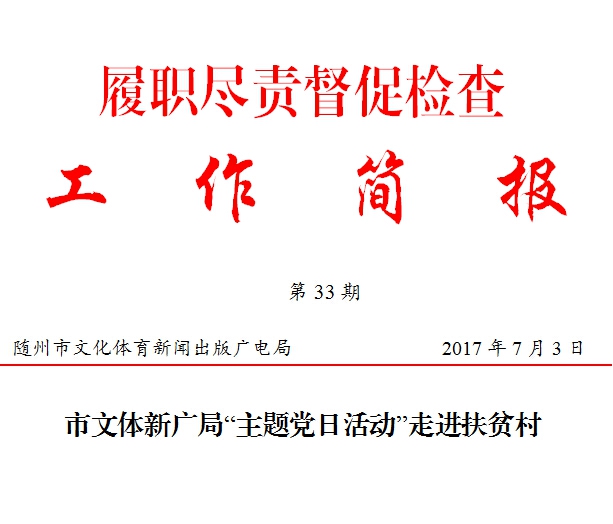 7月3日清晨,市文体新广局机关支部全体党员及局属单位支部书记,在局党组书记、局长黄苹的带领下,驱车到精准扶贫驻点村——随县殷店镇小东庙村,与小东庙村的党员群众一起开展了以“抓党建、促扶贫、整改督办、脱贫攻坚”为主题的支部主题党日活动。 小东庙村党员服务中心,全体党员干部唱国歌、重温入党誓词,诵读《党章》等规定动作外,还学习了《关于抓好扶贫攻坚问题整改工作的通知》。会上,黄苹就当前扶贫工作进行了安排部署,她强调,精准扶贫是市文体新广局履职尽责督促检查活动中的重点内容,我局驻村工作队在小东庙村党支部及群众的支持下做了大量卓有成效的工作,得到了上级领导及村民的认可,但仍然存在一定的差距。目前,精准扶贫工作已进入攻坚阶段。为切实落实市委脱贫攻坚相关会议精神,下一步的工作必须强化政治意识,大局意识,责任意识和争优意识,着重把握好四个重点:一是准确掌握扶贫攻坚的目标任务,建立好准确完整的档案卡片资料;二是准确施用扶贫攻坚的政策,建立好科学扶贫的长效机制;三是准确把握精准脱贫,全方位了解扶贫对象的脱贫实际,确保工作到位,程序严谨;四是准确把握帮扶的主体责任,建立与镇、村扶贫攻坚的共识,在项目,资金上进行重点帮扶,争取早日实现脱贫工作目标。 会后,市文体新广局机关支部全体党员分别到对口帮扶贫困户家中走访,询问对扶贫工作的意见和建议,并详细了解现阶段贫困家庭存在的困难和重点需求。党员们纷纷向贫困户捐款赠物,大家表示,将根据掌握的情况和帮扶对象与村党员干部一起共同研究解决办法,解决实际问题,以实际行动推动扶贫工作任务的落实。