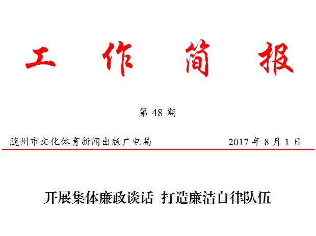 为全面落实从严治党与“两个责任”,督促党员干部自觉履行好“一岗双责”的主体责任,提高廉洁勤政意识,7月28日上午,市文体新广局党组书记、局长黄苹同志对局属各单位党支部成员、领导班子成员及新任、调整的8名干部进行了集体廉政谈话。 黄苹指出,形成风清气正的工作环境、打造一支廉洁自律的干部队伍是保证文体新广事业又好又快发展的和根本保障。各单位及各位领导干部要高度重视党风廉政建设,要抓党建带队伍,树立不抓党风廉政建设就是失职的理念,认真落实主体责任制,要讲规矩、守纪律,要做政治上的明白人,要紧盯重点环节、重要事项,特别是“三重一大”决策制度。即:“重大问题决策,重要干部任免,重大项目投资决策,大额资金使用,必须经集体讨论做出决定。”在工作中要做到有所为、有所不为。希望每一位新任职和调整的干部在党风廉政建设方面开好头、起好步,在新的岗位上不掉队、走正路,做一名让群众满意、让组织放心的党员领导干部。 黄苹同志对大家今后的工作提出了五点要求:一是要加强政治学习,提高政治站位。在思想上、行动上同党中央保持高度一致,增强“四个意识”,强化责任担当。二是要严于律己,带头廉洁自律。以身作则,时刻做到看‘权’要自重、掌‘权’要自省、用‘权’要自律。加强自我修养,纯洁社交圈、净化生活圈、规范工作圈、管住活动圈,要管好家属和身边工作人员。三是要遵纪守法,规范行为。遵循用制度管权、按制度办事、靠制度管人的工作机制,做到办事不离章、行为不越轨。四是要从反面典型案例中汲取深刻教训,引以为戒,切实增强遵纪守法意识,分清是非,提高拒腐防变能力。五是要争做表率,争创一流。追求高尚的品格,树立积极进取、乐观向上的人生态度,做勇争一流的表率,在工作上要争先恐后,精神上要奋发向上,做到“干在实处、走在前列”。各单位班子成员一定要严格廉洁自律,自觉遵守各项规定,积极践行崇廉拒腐、尚俭戒奢的优良作风,希望大家把纪律挺在前面,把责任扛在肩上,做一名履职尽责、敢于担当、善于作为、清正廉洁的干部。 通过廉政谈话,同志们深受触动,对正确对待权力,使用权力,落实“一岗双责”有了更加清晰的认识。大家表示将以此次廉政谈话为契机和动力,切实将廉政意识内化于心、外化于行,真正做到勤勉干事、干净做人。