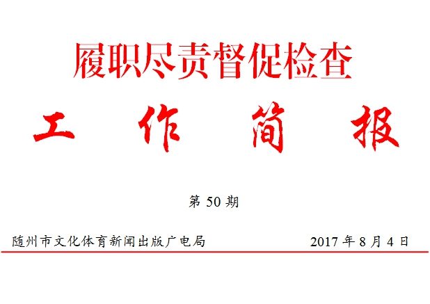 【市直信息】 ●省文化厅转发《随州市互联网上网服务营业场所专项整治工作方案》的通知。7月19日湖北省文化厅向各市、州、直管市及市神农架林区文化局转发了《随州市互联网上网服务营业场所专项整治工作方案》的通知(随综治办〔2017〕14号),请各地借鉴学习,并结合近期开展的全省文化市场专项整治行动,落实各项监管措施,强化网络化管理,切实加强互联网上网服务营业场所监管。 ●市文体新广局加强党风廉政建设等督办检查。市文体局党组成员,副局长耿新斌、文物科长董长宇等同志近日到市博物馆、市图书馆、市文化市场综合执法支队、市擂鼓墩文物管理处,督办检查党风廉政建设、履职尽责、综合治理等工作,组织学习《“三重一大”监督事项管理办法》及十八大以来随州市处理违规违法的情况通报。 ●随州市市文化市场综合执法支队强化郊区网吧管理。近日来,市文化市场综合执法支队联合曾都文化市场执法大队、曾都公安分局。网安大队、曾都公安分局南郊派出所对南郊3家网吧进行了联合检查,发现2家网吧存在使用万象系统,大量未实名登记及接纳未成年人行为,公安机关对1名不执行实名登记制度并拒不配合执法的网吧收银员强制带离,公安机关、文化部门将根据各自职责对2家网吧进行了严肃处理。 ●随州市文化市场综合执法支队快速应对12318举报电话故障。8月2日下午16时07分随州支队自查时发现12318电话为盲音无法接通。在原因不明的情况下,为不影响文化市场举报受理工作,随州支队迅速启动预案,一是与电信部门联系要求迅速解决,二是分别向市文体新广局、省文化厅相关领导汇报此情况,三是按省文化厅领导要求将12318故障情况和目前暂代12318举报电话的号码在随州政府网站公布。至18时34分,电信部门回复:经紧急排查抢修,是因平台数据升级导致线路脱钩,现已排除故障。市支队立即在随州政府网站公布此消息。 ●市图书馆在建军节期间与武警随州支队联欢。8月1日,市图书馆与武警随州支队举办“军民共建,鱼水情深”联欢活动,与武警官兵共同度过了一个丰富多彩的“八一”建军节。 【各地信息】 ●广水市举办庆祝建军90周年暨慰问“空降排—2017”国际军事比赛联谊晚会。8月1日晚,驻广空降兵某部礼堂里灯火辉煌、歌声飞扬。由中共广水市委、市人民政府、随州市双拥办和驻广空降兵某部举办的庆祝建军90周年暨慰问“空降排——2017”国际军事比赛联谊晚会在这里隆重举行。来自伊朗、哈萨克斯坦、摩洛哥、俄罗斯、南非、委内瑞拉等国际朋友们与驻广空降兵部队官兵、地方群众欢聚一堂,共同欢庆中国人民解放军建军90周年,迎接“空降排—2017”国际军事比赛的举行。 ●广水市印台山文化生态园项目建设工程开工。7月28日,广水市印台山文化生态园项目建设工程开工。这是武汉市政建设集团与广水市政府开展PPP合作的首个公益性基础设施项目。印台山文化生态园位于应山大道以西、建设二路以南、十长路以北区域范围内,园区共规划占地约2000亩,总投资达3亿元,将建设丹凤阁、凤凰湖、印台书院、革命烈士纪念区等9大景点,是广水市重点民生工程,对于提升城市品质、完善城市功能,具有重要推进作用。建成后与“一河两岸”毗邻而立,相交辉映,将成为广水市城市建设的又一张新的名片。 ●曾都开展游泳等高危性体育项目检查。为切实做好全区高危体育项目安全工作,预防和减少各类安全事故,确保高危体育项目消费者的人身安全,8月3日下午,区文体新广局组织工作专班,对辖区内目前正在运行的各类游泳场所进行了全面安全检查,检查中发现,辖区内个别游泳场所存在救生人员数量不足,救生观察台不足和部分救生员无上岗证等问题。针对存在的问题,执法人员现场下发了《责令整改通知书》,提出了书面整改意见,要求限期整改到位。