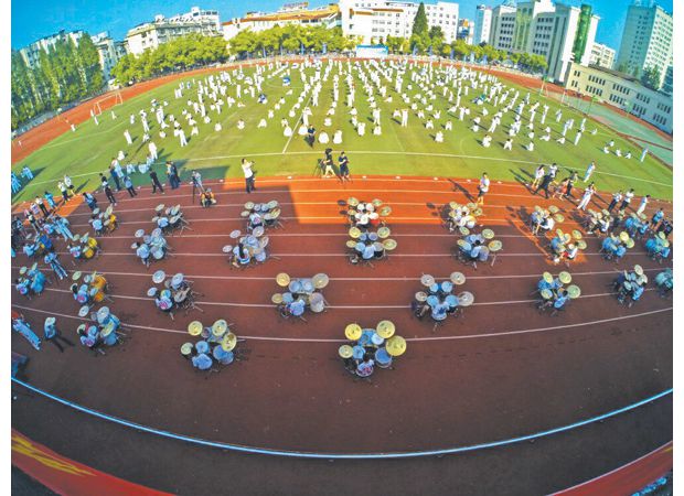随州网讯 8月8日,是我国第十个全民健身日,随州市第十届全民健身日启动仪式暨全国“百城千村”健身气功系列展示活动在文峰学校举行。图为健身气功、健身操、跆拳道、架子鼓等文体健身项目现场展演。(本报记者 李文军 徐 斌通讯员 刘安国摄)