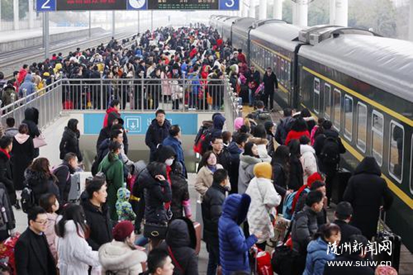 随州新闻网讯  2月10日正月初六,随州火车站迎来返程客流高峰,当日发送旅客1.4万人。据随州火车站有关负责人介绍,由于雨雪天气和节后返程等因素叠加,2月10日随州火车站客流量达到春运以来最高峰。(随州日报全媒体记者 徐斌摄)