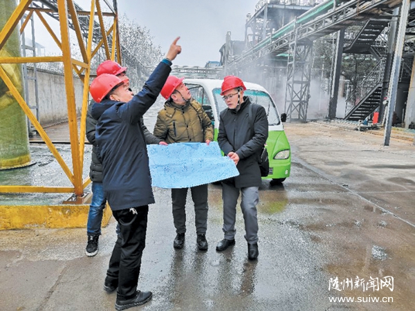 随州新闻网讯  当好“服务员”,助力“开门红”。2月12日,市规划局高新区分局工作人员冒雨到犇星化工开展上门服务,用实际行动支持企业发展。(随州日报全媒体记者 张清  通讯员 肖先超摄)