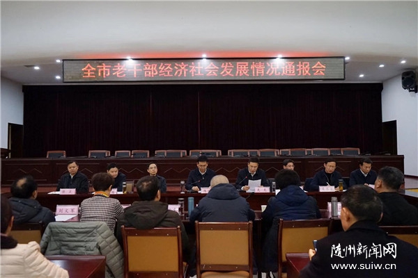 我市向老干部通报经济社会发展情况 陈瑞峰主持会议并讲话 克克通报情况 随州日报讯(全媒记者张琴)1月2日,我市召开全市老干部经济社会发展情况通报会议,向老干部通报2019年全市经济社会发展情况和2020年全市经济社会发展工作安排。 市委书记陈瑞峰主持会议并讲话。市委副书记、代理市长克克通报情况。市领导郑军、林常伦、甘国栋、吴丕华、张卫、刘宏业出席会议。 陈瑞峰在认真听取部分老干部的意见建议后说,过去一年随州市经济社会发展取得的重大成绩,离不开老领导、老同志们的关心、支持和参与,各位老领导、老同志退休之后依然牵挂、支持市委市政府的工作,在推动随州高质量发展中发挥了重要作用,并代表市委市政府向各位老领导、老同志表示衷心感谢。 陈瑞峰指出—— ●2020年是全面建成小康社会和“十三五”规划收官之年,也是地级随州市成立20周年,做好今年的工作责任重大、意义深远。要坚持以习近平新时代中国特色社会主义思想为指导,坚定不移贯彻新发展理念,创造性落实党中央决策部署和省委工作要求,挺起汉孝随襄十制造业高质量发展带脊梁,建成鄂西绿色发展示范区高地,建成襄十随城市群的重要支撑,建设品质随州,在推动高质量发展的新征程中争先进位、争创一流。 ●实现争先进位、争创一流的目标,需要全市上下共同努力,需要各位老领导、老同志一如既往地关心和支持。希望各位老干部发挥政治优势,始终做习近平新时代中国特色社会主义思想的忠实践行者;发挥经验优势,切实做随州高质量发展的积极推动者;发挥威望优势,努力做维护社会和谐稳定的模范参与者,集聚智慧和力量,共同把随州建设得更加美好。 陈瑞峰强调—— ●老干部是党和国家的宝贵财富。要深入学习贯彻习近平总书记关于老干部工作的重要论述,与时俱进推动理念思路、举措方法、制度机制创新,用心用情用力做好老干部各方面工作,推动老干部工作融入和服务市域治理体系和治理能力现代化进程。 ●更加重视发挥老干部作用,更好发挥老干部工作的制度优势,更加竭诚为老干部提供优质服务,各级党委及其组织人事部门、老干部工作部门要带着感情做好老干部工作,认真落实好老同志政治待遇和生活待遇,切实做到思想上关心好、生活上照顾好、精神上关怀好,不断增强老同志的幸福感、获得感和安全感。 克克在通报中指出—— ●2019年,全市经济社会平稳健康发展,主要体现在经济运行稳中有进,主要指标好于预期;产业新城支撑增强,转型升级步伐加快;文旅名城魅力提升,形象品牌持续彰显;生态绿城加快建设,环境质量不断好转;项目投资气场升腾,发展后劲明显增强;改革开放深入推进,发展活力加速释放;城镇功能日趋完善,乡村振兴扎实推进;社会事业全面发展,民生品质不断提高。 ●2020年,我市将重点做好四个方面的工作,即突出项目拉动,打造产业高地;坚持质效并举,增强区域支撑;推进要素集聚,做活市场枢纽;强化底线思维,保障改善民生,争先进位、争创一流,奋力谱写品质随州建设和高质量发展新篇章。 老领导严新国代表发言。老领导程菊华、梅行全、袁慧敏、刘文军、夏洪国、刘自新、李厚义、敖继霞、罗国银等参加座谈。