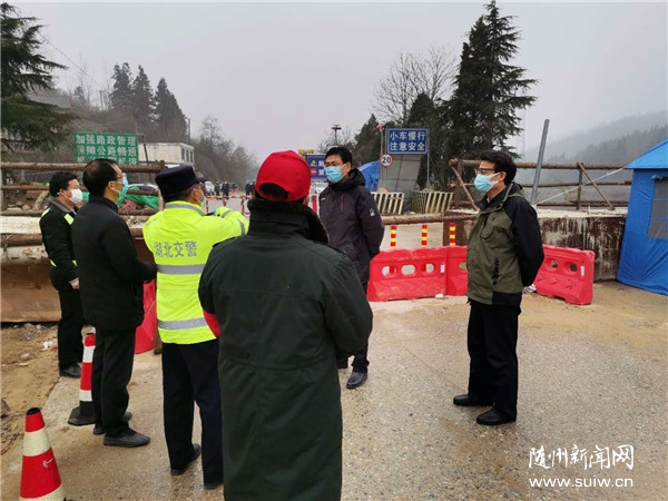 陈瑞峰在广水市暗访离鄂通道封控时强调 切实守牢离鄂通道 守好湖北“北大门” 随州日报讯(全媒记者 张琴)2月26日上午,市委书记陈瑞峰以“四不两直”方式,深入广水市武胜关镇、广水街道办事处的交通卡口、村(社区),检查离鄂通道封控、基层值守、春耕备耕、养老机构疫情防控等工作落实情况。 市委常委、市委秘书长刘宏业参加活动。 广水北部的武胜关镇一关跨两省,107国道经过这里贯穿南北。陈瑞峰来到107国道鄂豫交界武胜关卡口,检查离鄂通道封控情况。他向长期在这里值守的一线工作人员表示慰问和感谢,详细了解了近段时间车辆入随离随情况,详细询问了值守人员的工作和休息情况,对管制工作小组严格执行离鄂通道管制措施表示肯定,叮嘱现场工作人员要坚决把道口守牢,对不符合条件的车辆人员必须劝返。针对离鄂通道管控存在的短板,他要求,要调整优化值守人员结构,除公安、交通、基层干部力量外,进一步充实防疫医护人员力量;要积极为值班值守人员创造更好的条件,主动关心值班值守人员,保障值班值守人员的防护物资。 陈瑞峰强调,当前我市疫情防控仍处于最吃劲的紧要关头,不能有丝毫的懈怠心理。各地要深入贯彻落实习近平总书记在统筹推进新冠肺炎疫情防控和经济社会发展工作部署会议上的重要讲话精神,认真贯彻落实党中央决策部署和省委工作要求,继续实行严格的离鄂通道管控措施,在确保疫情防控物资和基本生活物资运输“绿色通道”畅通的前提下,坚持标准不降、力度不减、不胜不休,切实守牢离鄂通道,坚决做到内防扩散、外防输出,守好湖北的”北大门”,切实担负起随州在疫情防控大局中的责任。 村(社区)疫情防控措施是否落实落细?陈瑞峰来到广水街道办事处北湖社区,检查疫情防控值班值守情况,了解春耕备耕情况。陈瑞峰强调,要进一步壮大社区(村组)流动劝导队,动员更多志愿者参与,做实楼栋长、湾组长防控职责,确保小区每栋住宅楼、村组每个自然湾都有人值守,全地域、全天候、全时段封紧盯死看牢,真正做到无死角。要在加强疫情防控的基础上,有序开展春耕备耕工作,有确诊病例、疑似病例的村,一律暂不组织春耕生产,无疫村要根据农事缓急程度,组织好田间管理、科技服务、农资储备,严格防控措施,加强全程监管,确保不误农时农事。 陈瑞峰还前往位于广水街道办事处工新社区的颐养老年公寓,了解养老机构疫情防控工作落实情况。他强调,养老机构疫情防控要牢牢抓住救治、阻隔两大关键环节,实现筛查甄别、封闭式管理“全覆盖”,做好应隔尽隔、应收尽收、应检尽检、应治尽治。要实行24小时最严格的封闭管理,对生活物资采取统一配送,最大限度减少人员活动;要强化内部管理,严格执行日常操作规范,避免交叉感染;要严格落实属地责任,切实做到守土尽责,将养老机构纳入所在社区排查和封控管理,做到不漏一户、不落一人。