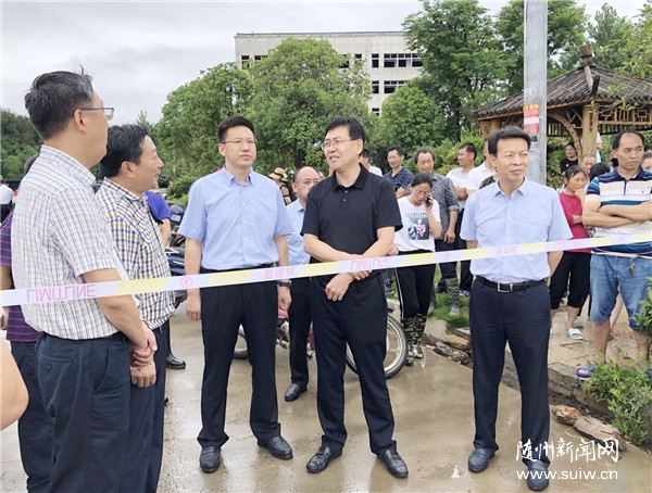 陈瑞峰克克检查指导防汛救灾工作强调 落实落细防汛措施 确保安全度汛 随州日报讯(全媒记者张琴、刘诗诗)6月27日至28日,我市迎来新一轮强降雨天气,全市平均雨量达到154毫米,防汛形势严峻。28日上午,市委书记陈瑞峰、市长克克在城区检查防汛排涝工作,并前往随县均川镇指导防汛救灾工作。 市委常委、市委秘书长刘宏业,市政府秘书长刘光海等参加。 本轮集中强降雨区域广、时间长、雨量大,城区部分道路出现大面积积水。陈瑞峰、克克来到舜井大道、汉东路沿线易涝点和南郊办事处真武二路、舜井大桥、望城岗拦河闸、四方堰府河大桥,检查防汛排涝工作。陈瑞峰强调,对城区积水路段要及时安排抽排设备,加快排涝进度;有关部门要统筹协调,闻险即动,通力合作,做好抢险排涝、交通疏导等工作;要密切关注雨情水情的变化,及时发布提醒信息,全力做好应对工作。 暴雨导致全市各类大小河流水位快速上涨,一些地势低洼地带的房屋被淹。陈瑞峰、克克来到均水均川二桥和均川镇周家畈村段,查看水情,了解受灾抗灾情况,并现场指导抢险救灾。现场看到,均水已接近洪峰流量,周家畈村居民通行的一座桥梁已被大水淹没,临河居民房屋一楼已不同程度被淹。在均川镇区古均街居委会,150多户居民房屋被淹,随县武装部和镇民兵应急分队20多人正在全力转移受灾群众。陈瑞峰要求,要迅速转移并妥善安置受灾群众,在河边等危险区域要做好警戒。 陈瑞峰强调,各地各部门要认真学习贯彻习近平总书记关于防灾减灾救灾的重要论述,按照省委书记应勇同志有关重要指示批示要求,坚持以人民为中心的发展思想,把人民群众的生命安全放在首位,安排好受灾群众的生活和受损房屋的修复,安抚好受灾群众情绪。要加强防汛排涝等抢险准备,落实落细防汛措施,密切关注汛情发展态势,加强24小时应急值守和巡堤查险,及时推送监测预警信息,科学有效组织群众转移避险,确保安全度汛,确保人民群众生命财产安全。要加大排涝设备、应急救援装备和物资器材保障力度,统筹调度应急抢险救援力量,重点地区预置救援力量,全力防范山洪、泥石流、山体滑坡等地质灾害和小水库、塘堰、中小河流、城市内涝等重点风险。要坚持应急与谋远相结合,抢抓对冲疫情影响的政策机遇,全面对接“四个1000亿”,谋划实施一批打基础、强功能、利长远的重大水利项目,着力补齐我市水利短板。 |