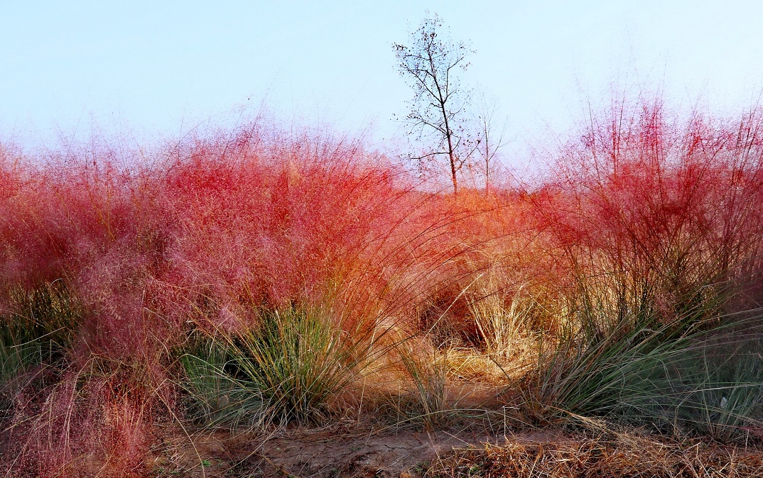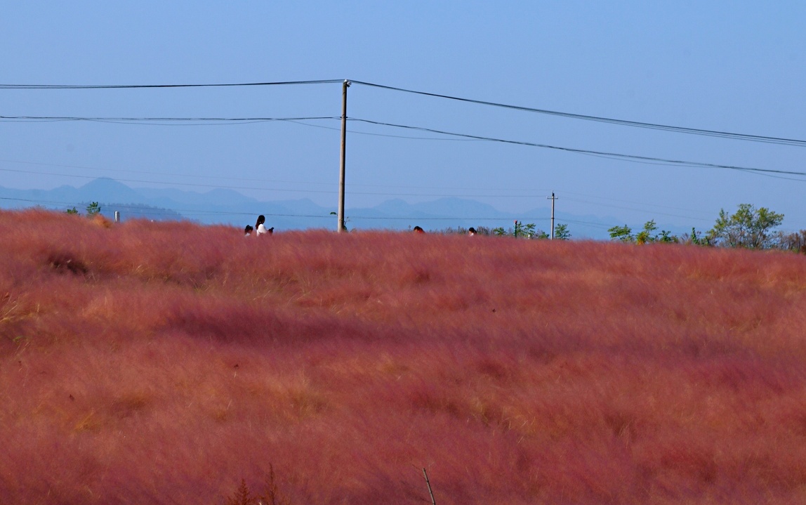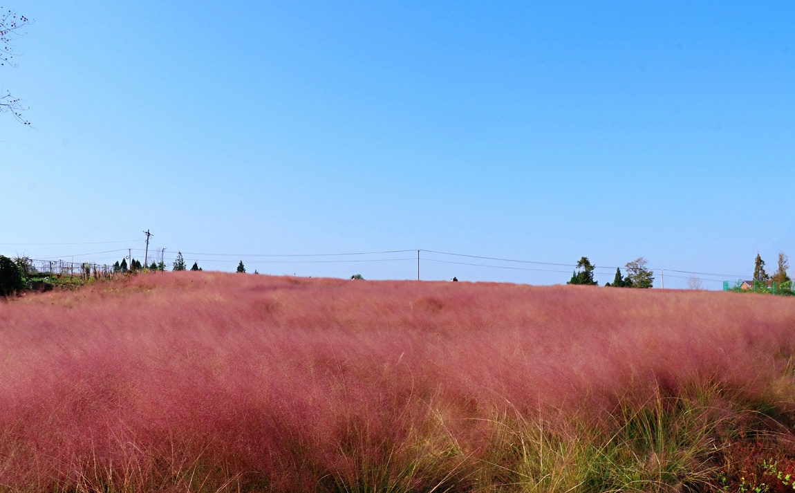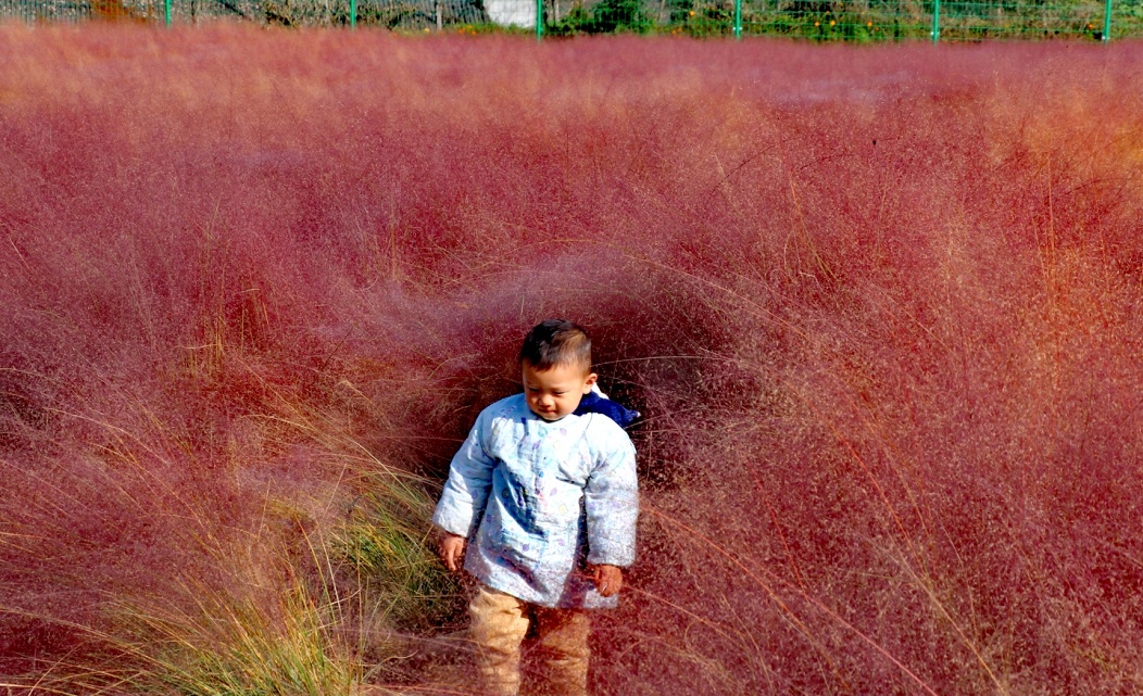 刘家大湾近十亩的粉黛乱子草,连成一片,随风摇曳,让人一见就心花开,忍不住想投入它的怀抱。阳光下,迷人的粉色雾状,美得令人窒息。站在这暖洋洋的粉色花海里,空气里都弥漫着浪漫的气息,仿佛置身于童话般的梦幻世界里。
