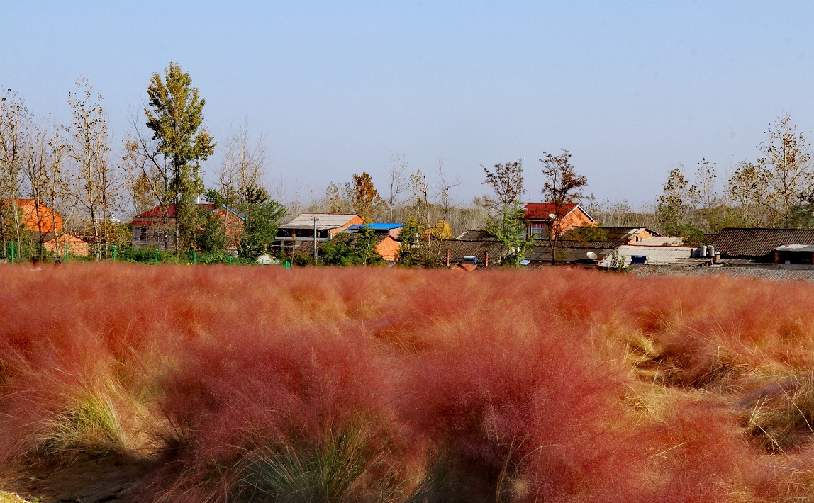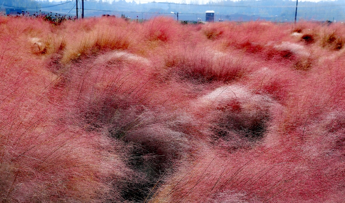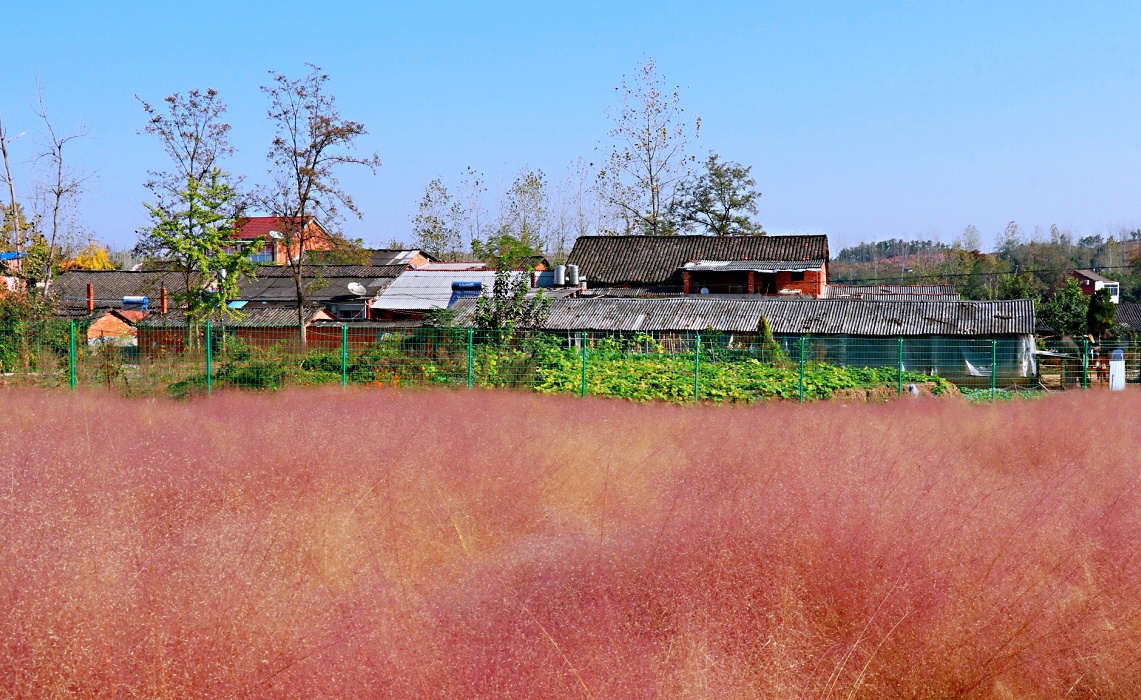近日,湖北随州市随县均川镇刘家大湾,粉黛乱子草进入盛花期。粉红色的花穗在秋风中摇曳,如云如雾,如烟似纱。