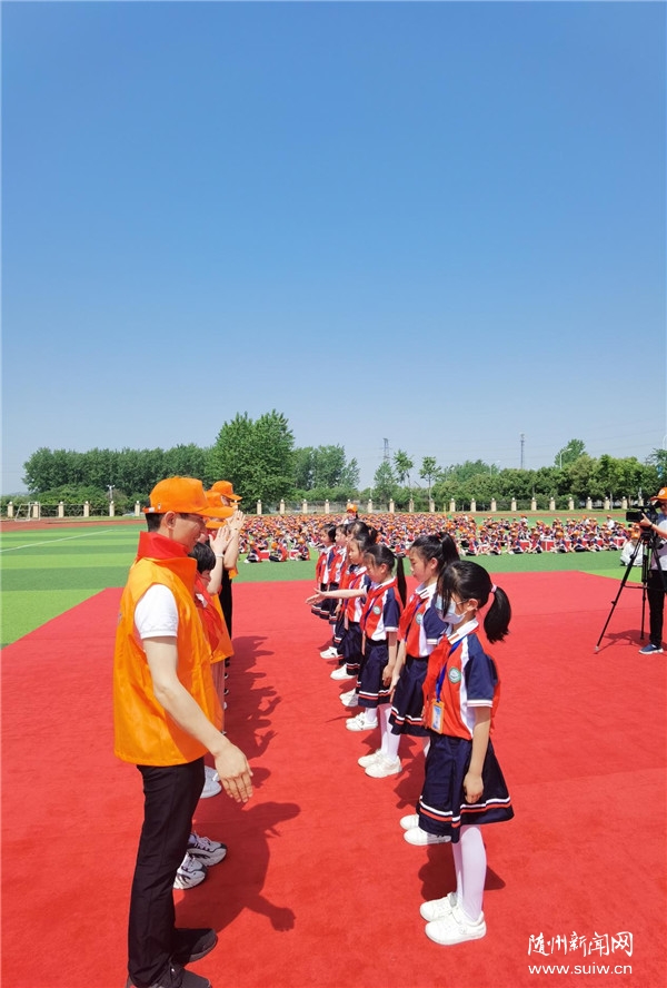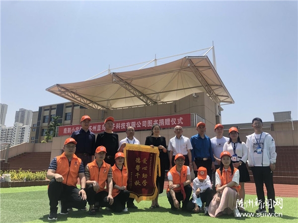 捐赠仪式在鹿鹤学校的操场举行。捐赠方苏州蓝鸟电子科技有限公司总经理乔靖萍一行,和曾都区工商联、区教育局相关负责人,鹿鹤小学的部分师生代表们,共同见证了此次图书捐赠活动。鹿鹤小学校长向大家表示诚挚的欢迎,向大家介绍了学校在校园文化建设、国学经典教育方面的进展。