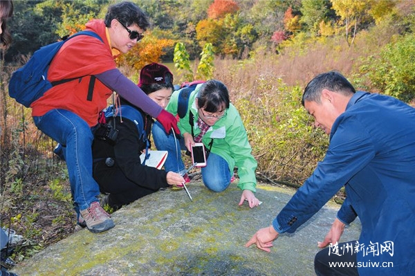 重要发现,桐柏山岩画走进专家视野 ——神农部落岩画探秘之一 随州日报全媒记者 陈晓林 徐斌 黄芳芳  中央民族大学中国岩画研究中心主任张亚莎教授(左)带领团队,和桐柏山岩画发现者、神农部落旅游开发公司董事长赵伟(右)一道,对岩画作田野调查。