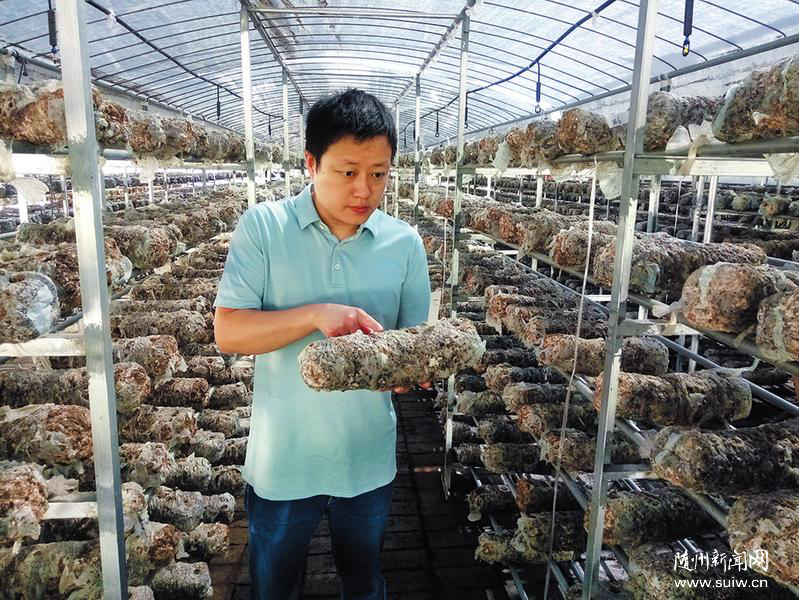 图为黄天骥在品种试验大棚察看香菇生长情况。王董斌摄 随州日报全媒记者 王董斌 通讯员 方圆 张鹏 盛夏的菇乡三里岗,满目青翠,风景宜人。 在吉祥寺村广场上,耸立着随州香菇产业的“开山鼻祖”、华中农业大学教授杨新美的半身铜像。他戴着眼镜,目光温和,深情地注视着这片在他点染下发生沧桑巨变的土地。 每次经过这尊铜像,黄天骥都要向祖师杨新美行注目礼。那一刻,他感觉自己的心与祖师的心贴得更近了。 黄天骥是杨新美教授的第四代弟子、华中农业大学硕士毕业生。6年前,他放弃繁华大都市,扎根菇乡三里岗。 他致力研发香菇新品种,选育的两个新品获省级认定,实现随州自主研发香菇新品零的突破。 他义务开展香菇栽培技术培训示范,与菇农打交道,足迹几乎遍布全国香菇主产区。 他和同事每年推广香菇新品种植8000万袋,带动省内外3万余农户增收10亿元以上。 把青春融入农村里,把论文写在大地上,把服务送到群众中。黄天骥情系菇农,扎根菇乡,实践所学,让人生在广阔的农村天地绽放芳华。 放弃繁华都市,扎根菇乡山镇 眼前的黄天骥清秀儒雅,待人随和,衣着朴素。在香菇大棚,在培训基地,他经常与菇农们打成一片,人们很难想到他是华农大硕士研究生。 今年35岁的他,被岳父——湖北长久菌业公司创始人、总经理龚长久委以重任,6年前刚进公司就出任副总经理、科研中心主任。 他说,选择扎根菇乡,源于那份难以割舍的菇乡情缘。 随县三里岗是随州香菇产业的发源地。1978年,杨新美教授在三里岗镇杨家棚人工栽培段木香菇获得成功,点燃了随州香菇产业的“星星之火”。 昔日地处深山、三里一道岗的穷山镇,依靠香菇产业成为远近闻名的富裕镇。“一年种菇盖新房,两年种菇娶新娘,三年种菇存银行,再种香菇奔小康”,成为众多菇农的真实写照。经过数十年发展,香菇成为随州的支柱产业、富民产业、创汇产业,随州被授予“中国香菇之乡”“中国花菇之乡”称号。 2008年,三里岗富裕起来的老百姓捐资为杨新美教授立像,一尊位于吉祥寺村,一尊位于华农大校园内,以彰其功、以示纪念。 2005年,杨新美教授离世,但华农大与随州香菇的缘分则代代相传。黄天骥在读研期间,曾多次在导师的带领下到三里岗开展香菇研究。 一人激活一个产业,造福一方百姓,让山乡发生巨变。看到杨新美教授的铜像,听闻他的动人事迹,黄天骥在心里种下了情系菇农的种子,他希望自己有朝一日能像祖师那样,用自己所学服务社会、报效人民。 2014年,妻子华农大硕士毕业,岳父龚长久向他们发出了回乡创业的邀请。 龚长久是伴随三里岗香菇产业成长起来的企业家,在菌种行业摸爬滚打30多年,他深知技术和人才对于菌种产业发展的重要性。农村缺乏高层次菌种研发人才,一直是困扰香菇行业发展的难题。 产业发展需要人才、智力、创新支撑。“我们还是回乡创业吧!”经过深思熟虑,黄天骥和妻子毅然辞去武汉的工作,回到位于三里岗的长久菌业公司,从事香菇新品种选育、新技术研发和科普示范推广工作。这一干就是6年,他和妻子至今仍是随州香菇产业一线仅有的两名硕士。(下转第二版) (上接第一版) 放弃繁华都市,扎根山镇菇乡,黄天骥“无悔当初的选择”。他说:“我是微生物学专业的,在产业一线能更好地发挥自身优势为菇农服务、发展食用菌产业,创造更大的经济效益和社会效益,实现人生的价值。” 奔走在菇乡大地上,他感到踏实、充实、快乐。 选育香菇新品,促进提质增效 “这个新品种产的菇,个大肉厚,菇圆柄短,花菇率高、产量高,增产又增收,大伙儿都说好!”三里岗镇吉祥寺村菇农李公付如此评价说。 这个新品种就是黄天骥选育的三个秋栽香菇新品之一“久香401”,去年推广到3000万袋,农户平均增产30%。 香菇产业链条在不断延长,处于最前端的是菌种研发。黄天骥说:“香菇种植,菌种很关键,它直接决定着香菇的品质。好的菌种抗病、抗逆性强,可以带来香菇的优质高产,增加菇农收入。” 香菇种植过程中,受气候环境、栽培技术的变化等影响,品种容易出现老化、变异现象,导致产量变低、质量变差、出现烂袋等问题,影响菇农增收,需要不断选育新品种。 长久菌业以前主要是与大专院校合作,进行菌种的初级研发。黄天骥到公司后,组建起20多人的研发团队,建立了设施化培养室、规范化检测实验室和现代化的菌种菌包生产线等,并与科研院校合作选育香菇新品种——科研院所负责菌种杂交初筛等前期工作,公司负责品种筛选等后期工作。 走进黄天骥的实验室,里面挂满各种实验仪器。他向记者介绍说:“香菇新品选育主要是采用杂交育种的方式,通过比较杂交子的菌丝生长、转色情况、农艺性状等特征,经过多年试验,选出综合性状好的新品种。这是一个从无到有的过程……” 这也是一个千培万育、千挑万选的艰苦过程,不断地试验、淘汰、筛选,考验着科研人的细致、耐心和意志。育种时节,黄天骥和同事们在养菌车间、试验大棚日夜守候,观察、测量、记录不同品种的菌种在各种条件下的生长情况,并对试验数据进行分析、比较,最终挑选出最优秀的品种。 “100个品种里,能选育出一个优秀品种就算是幸运的。”黄天骥说。经过多年选育,他主导或参与研发的3个秋栽香菇品种综合表现良好,其中“久香401”已投放市场4年,“久香秋7