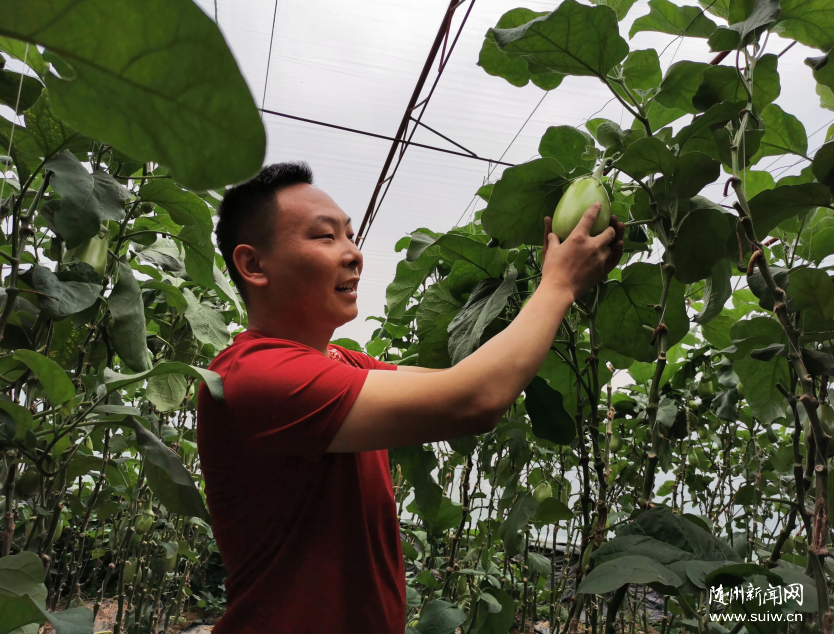 远远望去,集中连片的蔬菜大棚成为一道抢眼的风景线。近日,记者来到湖北随州随县安居镇王家沙湾村的大棚种植基地,村民邓小闯和哥哥邓泽皓正在自家大棚内劳作着,棚内的茄子植株有一人多高,枝头的茄子色泽鲜艳、个头饱满。邓小闯一家是村里的贫困户,几年前加入村里大棚蔬菜合作社,一家人种植蔬菜成功实现了脱贫。
