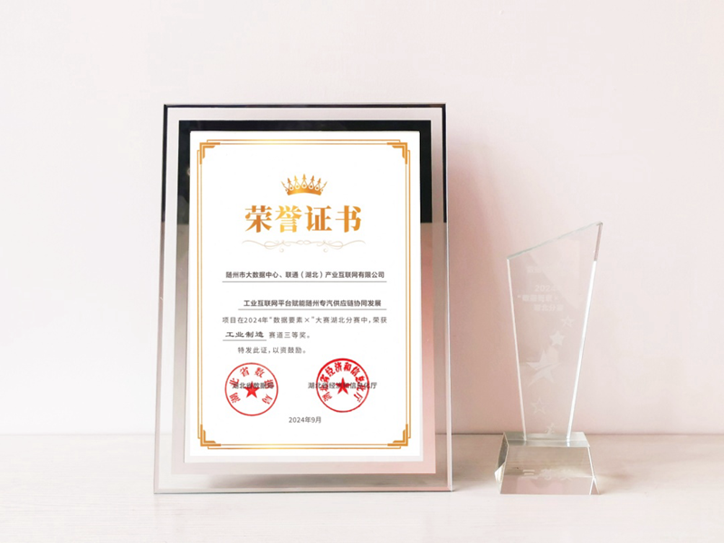 (图:工业互联网平台赋能随州专汽供应链协同发展项目在2024年"数据要素x"大赛湖北分赛中,荣获工业制造 赛道三等奖)