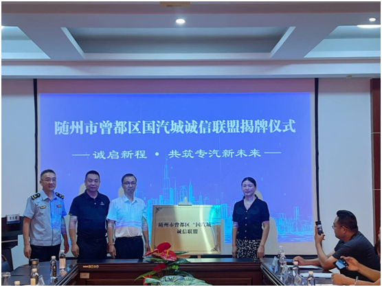 随州新闻网讯(通讯员熊妍卉琦、邹丽)7月31日,湖北专汽网科技有限公司一楼会议室内气氛热烈,伴随着热烈的掌声,曾都区“国汽城”诚信联盟正式揭牌。