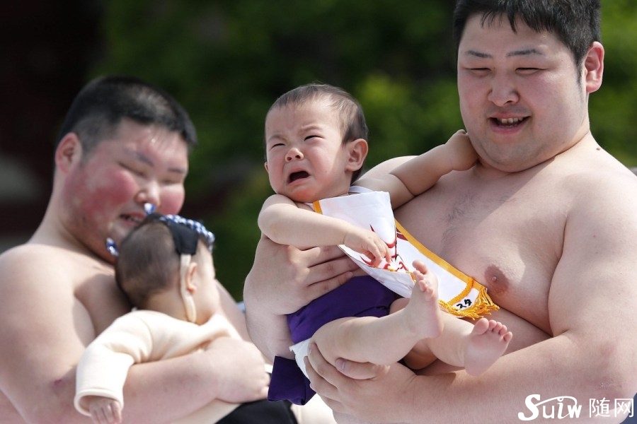 日本举行“宝宝哭”大赛 相扑吓哭小孩