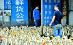 5月6日,武汉竹叶山中环商贸城家禽市场,运送活禽的货车一辆接一辆进出,屠宰加工坊里的工人忙得没时间吃午饭。4月7日,该市场受H7N9禽流感疫情影响临时关闭。到昨日,100余家经营户中已有约40家恢复营业。(荆楚网)