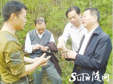 24日,在随县万和镇尖峰村,村支书杨宣东对记者谈起吴治炎,眼晴情不自禁地湿润起来。他指着那一山又一山群众称为摇钱树、子孙树的油茶说,这是老促会支持1万元、协调扶持资金9万元建起的基地,每棵茶树都凝结着吴会长的心血。
