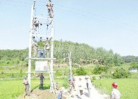 8月9日,曾都区供电公司何店党员服务队顶着烈日,为王店村新架一台100千伏安变压器。(随州日报)