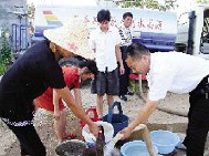面对持续干旱少雨,随县抗旱小分队日前紧急为饮水困难群众调运生活用水,受到村民欢迎。(随州日报)