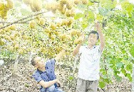 8月28日,随县万和镇山头村齐世洋家弥猴桃园的枝条上挂满一只只金黄的弥猴桃。近年来该镇引进“金魁”优良品种弥猴桃,推广种植120余亩,去年亩均纯收入过万元,今年又喜获丰收。(随州日报)