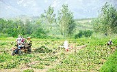9月6日,随县万和镇沙河村农民正在地里收获花生。面对旱情,今年该村调种500亩花生获得丰收,亩产450公斤左右,比较效益不比种水稻差。(随州日报)
