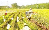 近日持续晴好天气,我市农民抢抓有利时机收割稻谷。图为曾都区何店镇响堂街居委会的农民在收割中稻。(随州日报)