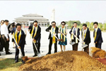 连战夫妇(左三、左四)在海峡两岸关系协会原会长陈云林(左二),市委书记刘晓鸣(左一),市委副书记、市政府党组书记、副市长郄英才(右一)的陪同下,在炎帝神农故里植下纪念树。(随州日报)