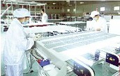 我市大力发展新能源产业,优先发展太阳能光伏发电项目。图为晶星公司正在生产太阳能组件。(随州日报)