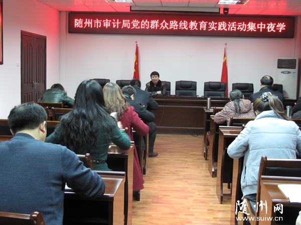 为将党的群众路线教育落到实处,市审计局坚持“活动不断、学习不减”, “长流水不断线”做到真学实干。持续开展每周至少两次的“学习日”活动,紧紧围绕认真学习党的十八大精神,以补精神之“钙”、除“四风”之害、祛行为之垢、立为民之制为重点,做到每周两次的学习有计划、有组织、有内容、有笔记,努力践行着“责任、清廉、依法”的审计人员核心价值观。图为审计局全体党员干部正在认真学习,一边听讲座、一边做笔记。(通讯员 艾双运 龚佳摄)