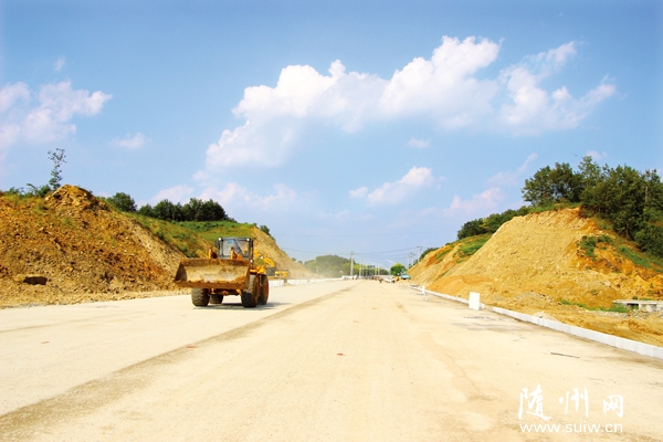 随城白云大道路面施工进入尾声,最后一公里左右路面完成沥青铺装后将直抵白云湖新坝南岸,随城一湖两岸全线贯通。白云大道起于白云湖大坝南岸,止于白云湖新坝南岸,全长近10公里。 (记者 徐 斌摄)