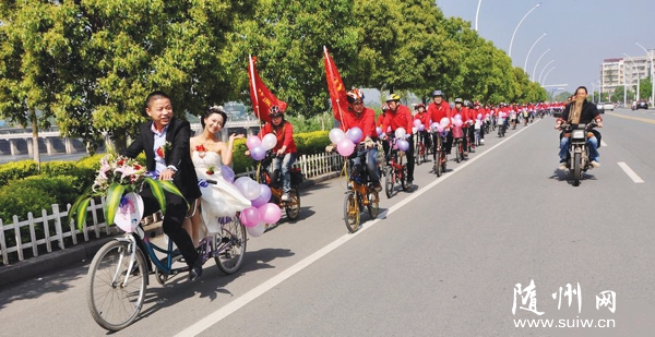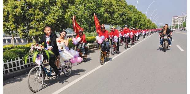 ●5月4日,我市举办了2014首届中式集体婚礼,12对新人参加。