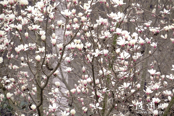 城区青年路两旁玉兰日前竞相开放,为市区增添了浓浓的春意。 (记者 孙洪涛摄)