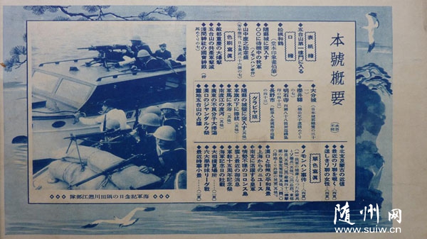 《历史写真》昭和十四年七月号,大正二年创刊,第叁百拾四号,全地区战况特报,第4页是"湖北之坚垒随县城□突入□",彩色照片。16开本,这是第三种日本出版的有关日军攻占随县的图册。图片中的主体建筑物为随县城龙会门城门,人物为一群持枪的日军正在跑步冲向城门。城门内火光、烟雾弥漫。昭和14年为1939年,根据史料记载,1939年5月1日开始随枣会战,7日随县城失陷,照片即6至7日。