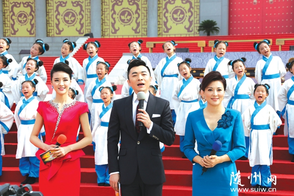 图二:中央电视台、湖北卫视等媒体现场直播大典盛况