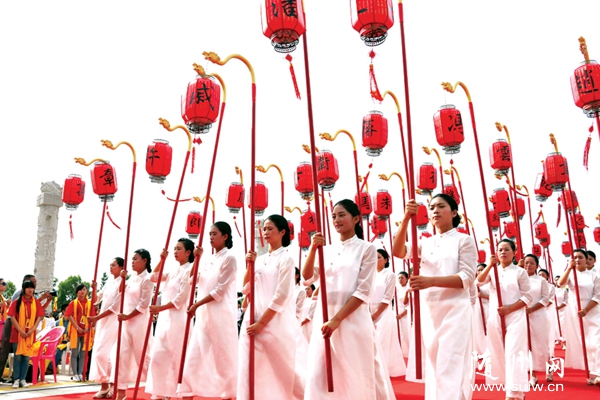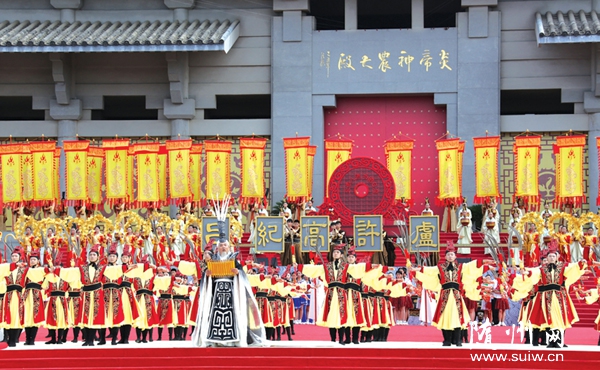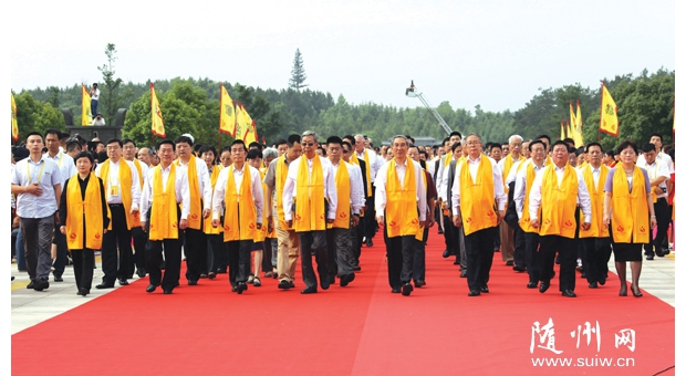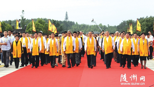 图一:参加乙未年世界华人炎帝故里寻根节的领导和嘉宾步入大典现场。