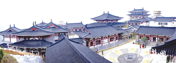 宝珠峰上,方丈院、地宫建设一刻不停;山下,新区建设如火如荼,牌坊、民俗村、人工湖正加紧施工。