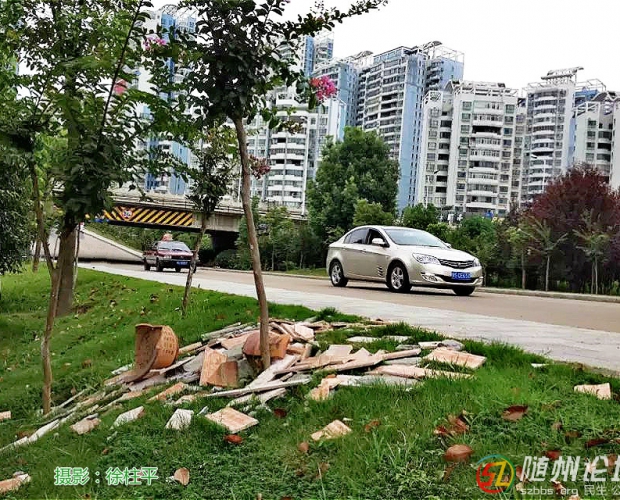 这些废弃的瓷砖还有水泥粘附在上面,想必是哪家改造房屋后,清理出来的垃圾。现在正是装修旺季,笔者不敢在此过多谈论是非,以免招致拍砖、吐槽。只想弱弱地说两句:不管是房主,还是帮忙搬运的师傅,多走几步,将垃圾送到指定地点;随手一倒,自己是方便了,好端端的一片绿地却被糟蹋了。