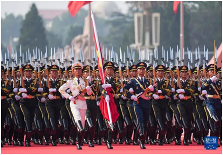 徒步方队中,军人身姿挺拔,眼神坚定,他们迈着整齐的步伐,仿佛钢铁洪流一般,让人感受到了人民军队的强大力量。装备方队展示的先进武器装备让人为之惊叹,不仅体现了我国国防科技的飞速发展,更彰显了我国维护国家安全和世界和平的决心。空中梯队呼啸而过,拉出一道道绚丽的彩烟,仿佛是在天空中书写着国家的荣耀……各方队以精湛的技艺和无畏的勇气展示了我国强大的军事实力。