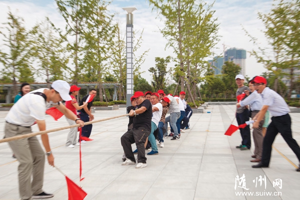 随州网讯    9月28日,2015“万人文体比赛、万人技能比武”活动暨国庆66周年书法、美术、拔河比赛举行,图为拔河比赛现场。 (记者 徐 斌摄)