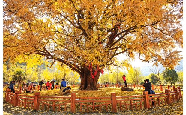 一年风光独好处,最是金秋大洪山。10月至11月,是旅游大洪山最佳的时节。天高云淡,五彩斑斓,此时的大洪山,就像一个万能的魔术师,将他的技艺发挥到极致。仅是自然界的云和雾、空气的阳光、清风和月光就够你享用。也有让你在不经意间就换却妆扮的千年古银杏,阳光下,古老的银杏如一尊金色的大佛,似乎在诉说着大洪山千百年来的佛缘传说。茫茫山林中,数不清也叫不出名的花、草、树木,似乎都在做着寒冬前的最后一次谢幕演出,金黄与火红一寸一寸在蔓延开来,如同素颜的女子精心梳妆,好似在秋天要赶赴一场约会般隆重。金秋的大洪山,也是一个收获的季节。无论你是登金顶礼佛结缘,还是漫步生态游步道,路边随时可能出现的野核桃、猕猴桃、八月炸等山果定会让你有意外惊喜,还有山里人家备好的各色佳肴也会让你大开胃口。若是有时间,最妙的能够在核心景区住上一晚,只有清风、秋月、虫鸣相伴的夜,你何时曾有过,又将何时有。