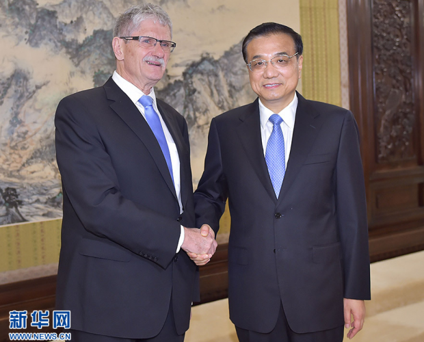 10月27日,国务院总理李克强在北京中南海紫光阁会见第70届联大主席吕克托夫特。 新华社记者 李涛 摄
