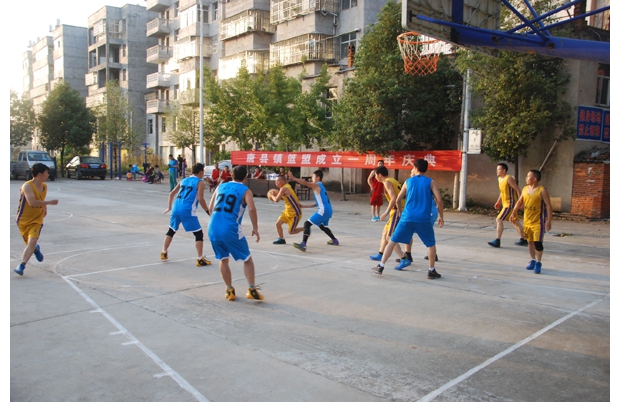 随州网讯 今年来,随州市随县唐县镇不断丰富农村体育活动。图为该镇篮球联盟队在肖畈村举行友谊赛的情景。 (记者 周强 通讯员 李金刚 摄)