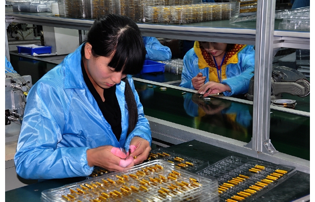 随州网讯 随州市随县奋力冲刺2015年工业经济年度目标,夯实“十三五”经济发展基础。图为该县允升电子烟装配生产线,这些产品全部出口欧美市场,产品供不应求。 (记者 李文军 通讯员 龚承斌 摄)