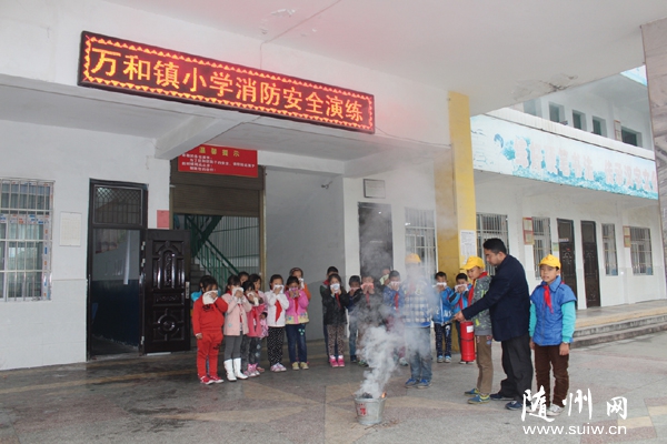 随县万和镇小学组织全体师生进行消防安全应急疏散演练