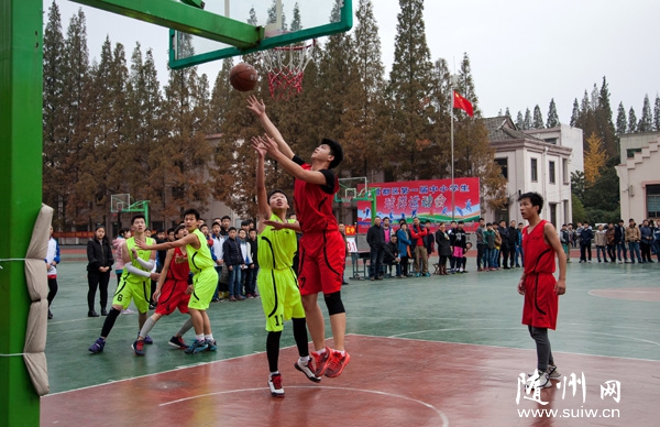 随州网讯   日前,随州市曾都区举行第一届中小学生球类运动会,图为篮球比赛现场。 (记者 徐 斌摄)