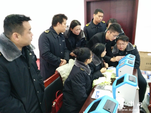 近日,20套食品安全快速检测设备“落户”随县食药监局。图为该局人员正在学习操作技巧。(通讯员 后勇 摄)